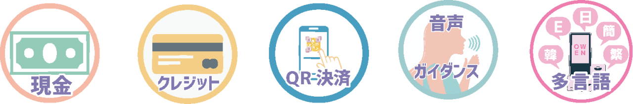 決済はOWENのみで対応可能ですが、クレジットカードや電子マネー(交通系ICなど)をご利用の場合は、別途決済端末との連動が必要となります。